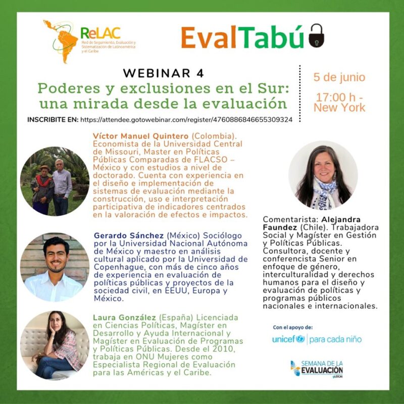 Activa participación tuvieron las profesionales de la Consultora en los paneles preparados durante la semana de la Evaluación en la región. Tanto Alejandra Faúndez como Marisa Weinstein participaron muy activamente como comentarista y panelista respectivamente en los diversos diálogos que se generaron con los colegas de la red e invitados. Conversaciones, aprendizajes y compromisos fue la tónica de las jornadas entre pares durante la semana de la Evaluación y así fue la convocatoria de la Red Latinoamericana de Seguimiento, Evaluación y Sistematización quien fue la organización anfitriona de estas jornadas.